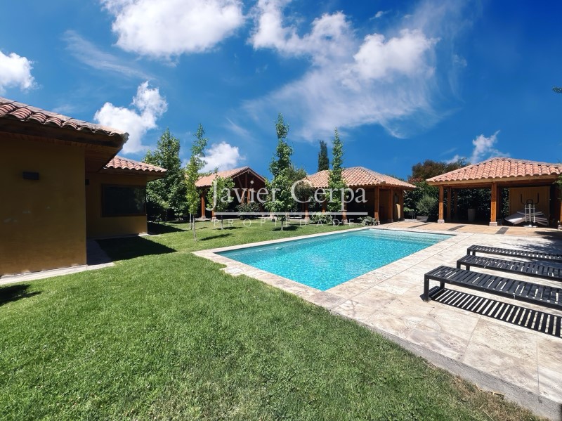 Se arrienda preciosa casa chilena no perimetral, año 2019, amplios espacios, en exclusivo condominio Las Brisas de Chicureo, cercana a colegio Highlands con toda la seguridad y servicios de alto nivel que ofrece el condominio. 7 dormitorios + 5 baños + sala de estar + servicios + bodegas + sauna - Hall de entrada - Living y comedor separados con salida a terraza - Jardín formado y piscina - Quincho, bodega, sauna y baño exterior - Cocina con comedor de diario, logia y patio de servicio techado - Dormitorio y baño de servicio - Baño de visitas - Primer, segundo y tercer dormitorio, todos con salida a terraza o jardín - Sala de estar con salida a terraza - Cuarto, quinto y sexto dormitorio, todos con salida a terraza o jardín - Dos baños completos, uno de ellos con hidromasaje - Dormitorio principal en suite con walk in closet, baño con hidromasaje y salida al jardín EQUIPAMIENTO: - Termopanel en toda la propiedad - Piso de porcelanato en toda la propiedad - Calefacción central por radiadores - 2 equipos de aire acodicionado - Cocina con comedor de diario, equipada con encimera a gas, campana y horno Trotter - Dormitorio y baño de servicio - Amplia logia y patio de servicio techado - Piscina con terraza de mármol y jardín formado con riego automático - Quincho formado con parrilla a carbón, campana, horno a leña y lavaplatos - Sauna y baño exterior - 3 bodegas y canil para perros - Conexión para generador de luz y ablandador de agua - Estacionamiento techado para 2 autos - 400 metros cuadrados construidos - 4.233 metros cuadrados de terreno El condominio cuenta con agua de pozo propio, centro de monitoreo de seguridad las 24 horas, servicio de alarma conectado a la central, drones con visión nocturna, buses de acercamiento y el club Las Brisas con restaurant propio y acceso a variados deportes y actividades. VALOR DE ARRIENDO $3.500.000 Quieres más información, coordinar una visita, vender arrendar o comprar tu casa, contáctanos.