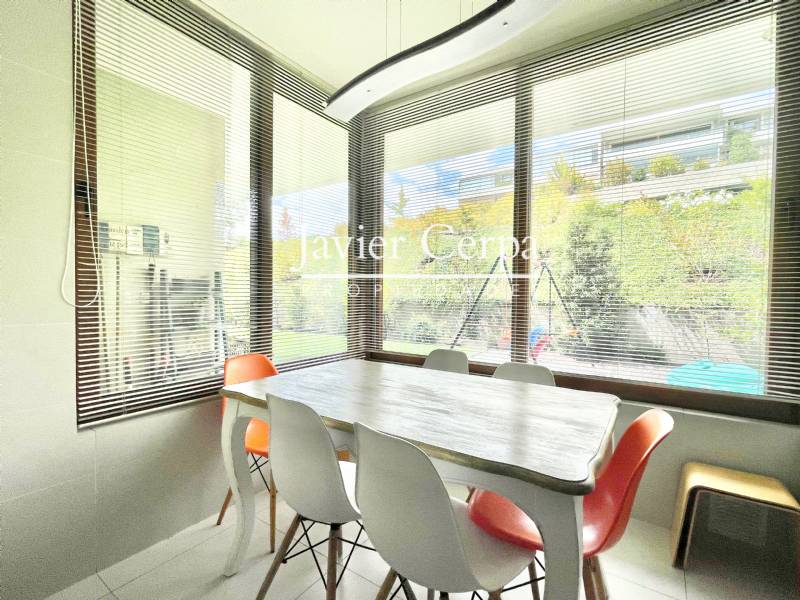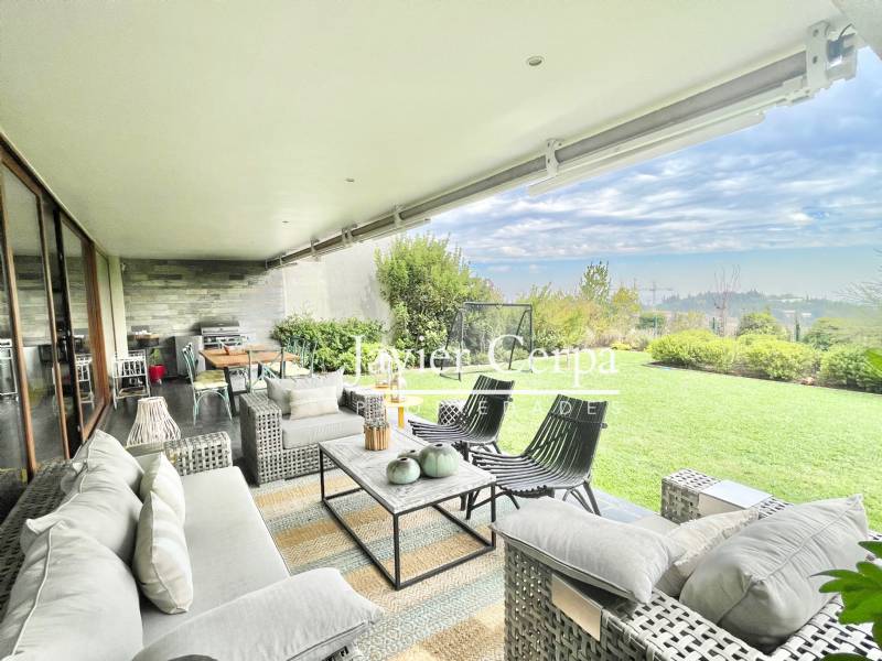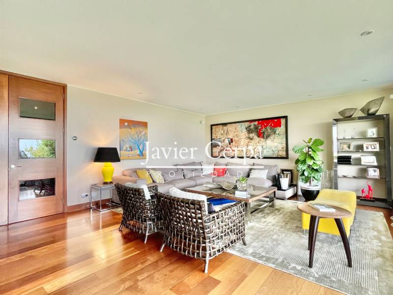 Especificaciones departamento: piso de madera en recibos, ventanas termopanel, calefacción por losa radiante, central de aspirado, jacuzzi en baño principal, toldos eléctricos en terraza