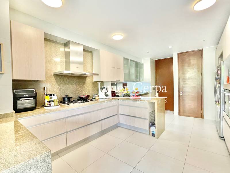 Distribución: amplio hall de entrada, living y comedor separados con salida a gran terraza, baño de visitas; estupenda y luminosa cocina amoblada y equipada con comedor de diario, cómoda logia, 2 dormitorios de servicio que comparten un baño.
