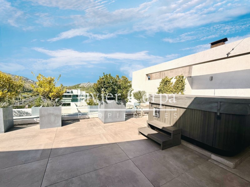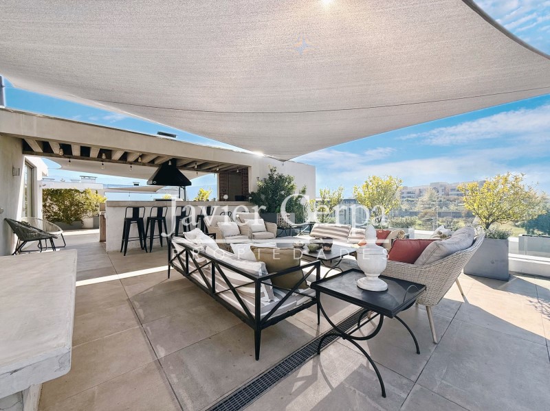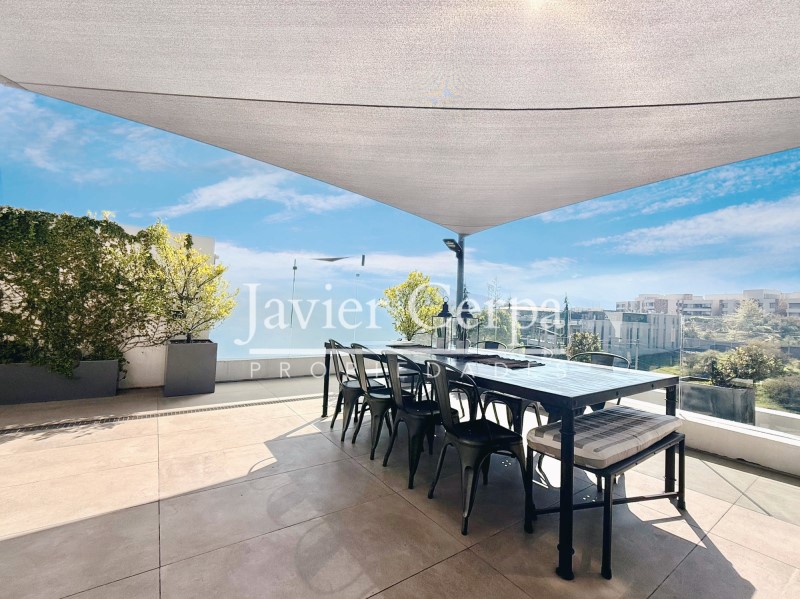 Espectacular azotea de 168 m2, con grandes vistas, qincho en obra, cava, baño. Velas que permiten sombra y privacidad, jacuzzi.