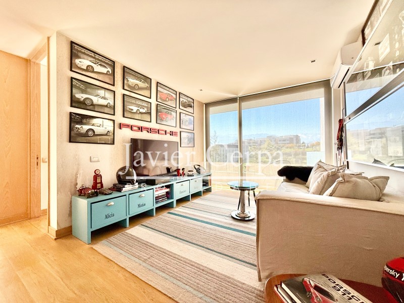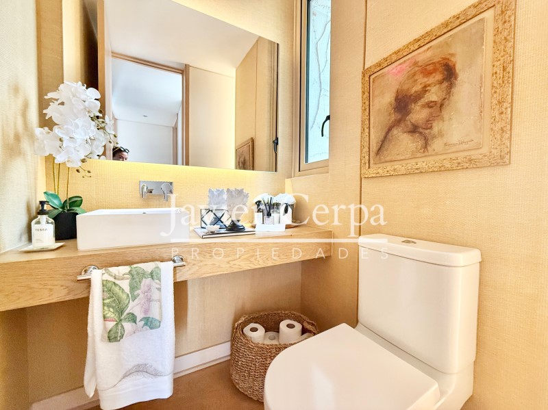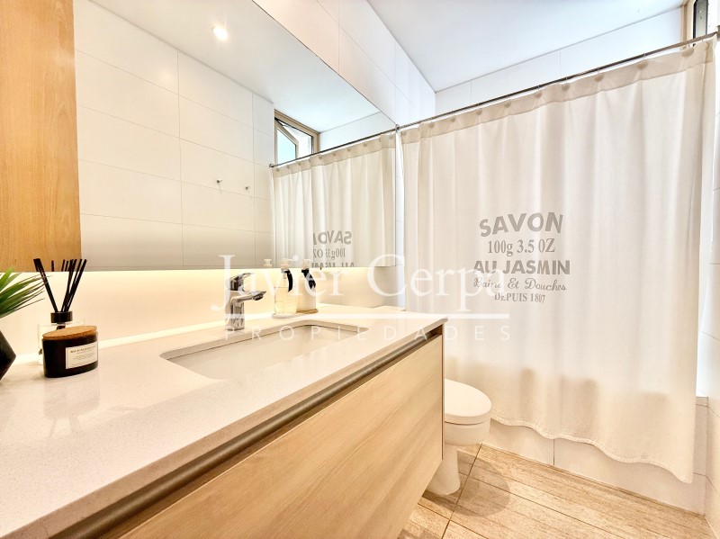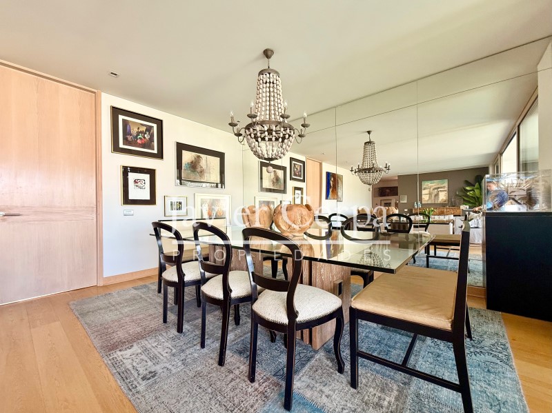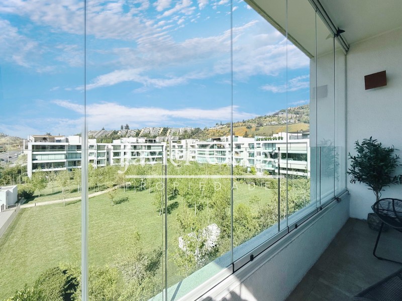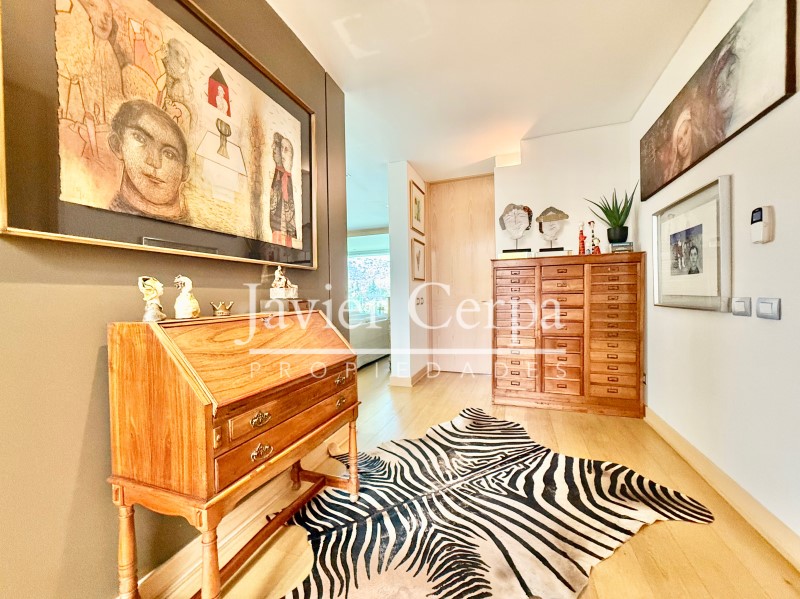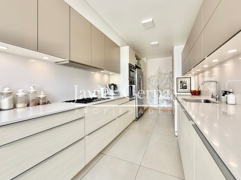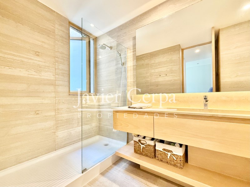 Especificaciones departamento: piso parquet roble Haro, ventanas termopanel Tecma, muebles cocina PoggenPohl, artefactos cocina Miele, closets y puertas maderas del pacifico, jacuzzi en la azotea para 6 personas, alarma, cierres vista libre marca Panorama en living comedor y dormitorio principal, aire acondicionado en sala de estar, cierre cortina eléctrica en dormitorio 2.